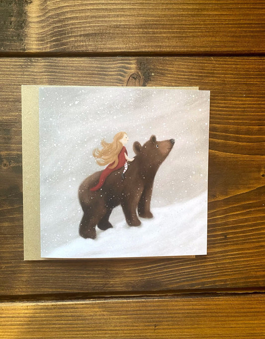 Girl & Bear Snow Journey Christmas Card - OLD CARD STOCK SALE