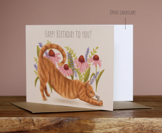 Happy Birthday to you Ginger Cat & Mouse Greetings Card - OLD CARD STOCK SALE