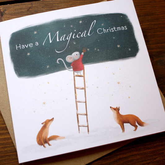 'Have a Magical Christmas' Mouse & Foxes Christmas Card - OLD CARD STOCK SALE