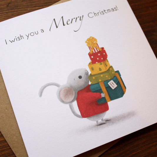 'I Wish you a Merry Christmas' Mouse Christmas Card - OLD CARD STOCK SALE