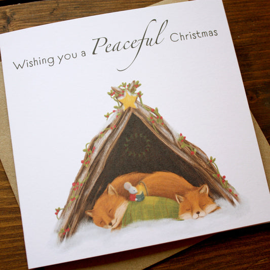 'Wishing you a Peaceful Christmas' Mouse & Foxes Christmas Card - OLD CARD STOCK SALE