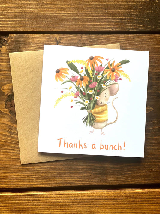 Thanks a Bunch Mouse & Flowers Greeting Card - OLD CARD STOCK SALE