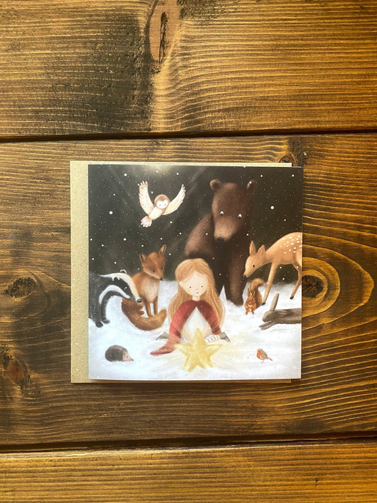 Girl & Woodland Animals Christmas Card - OLD CARD STOCK SALE