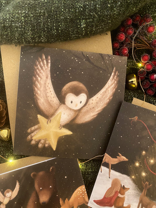 Owl & the Star Christmas Card - OLD CARD STOCK SALE