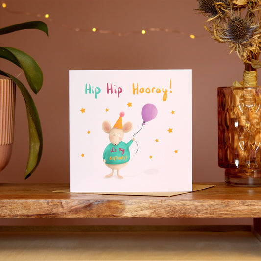 Hip Hip Hooray Mouse Birthday Card - OLD CARD STOCK SALE
