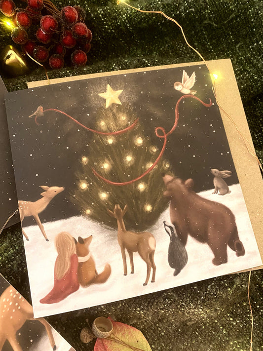 Girl & Woodland Animals Christmas Card - SECONDS STOCK SALE