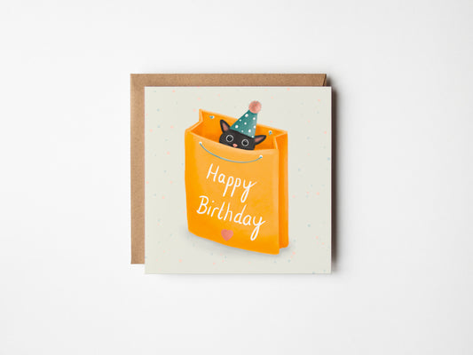 Cat in a Bag Birthday Card - SECOND STOCK SALE