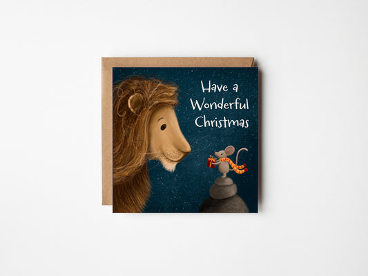 'Have a Wonderful Christmas' Lion & Mouse Christmas Card - OLD CARD STOCK SALE