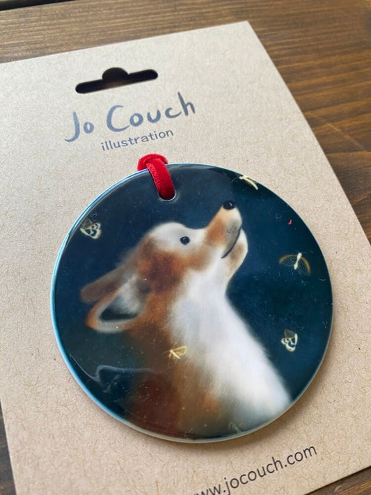 Fox & Moths Ceramic Hanging Ornament - END OF LINE SALE