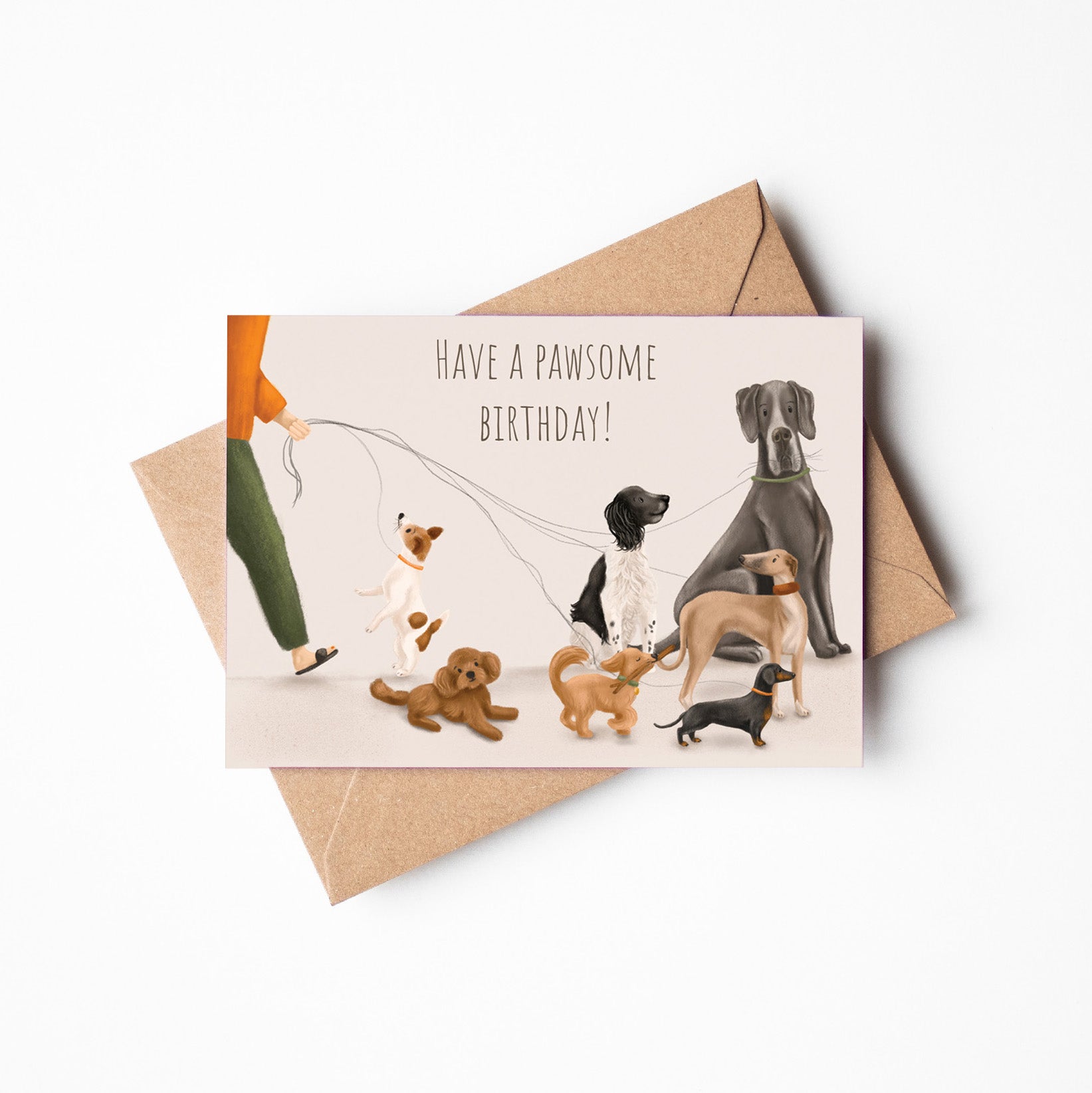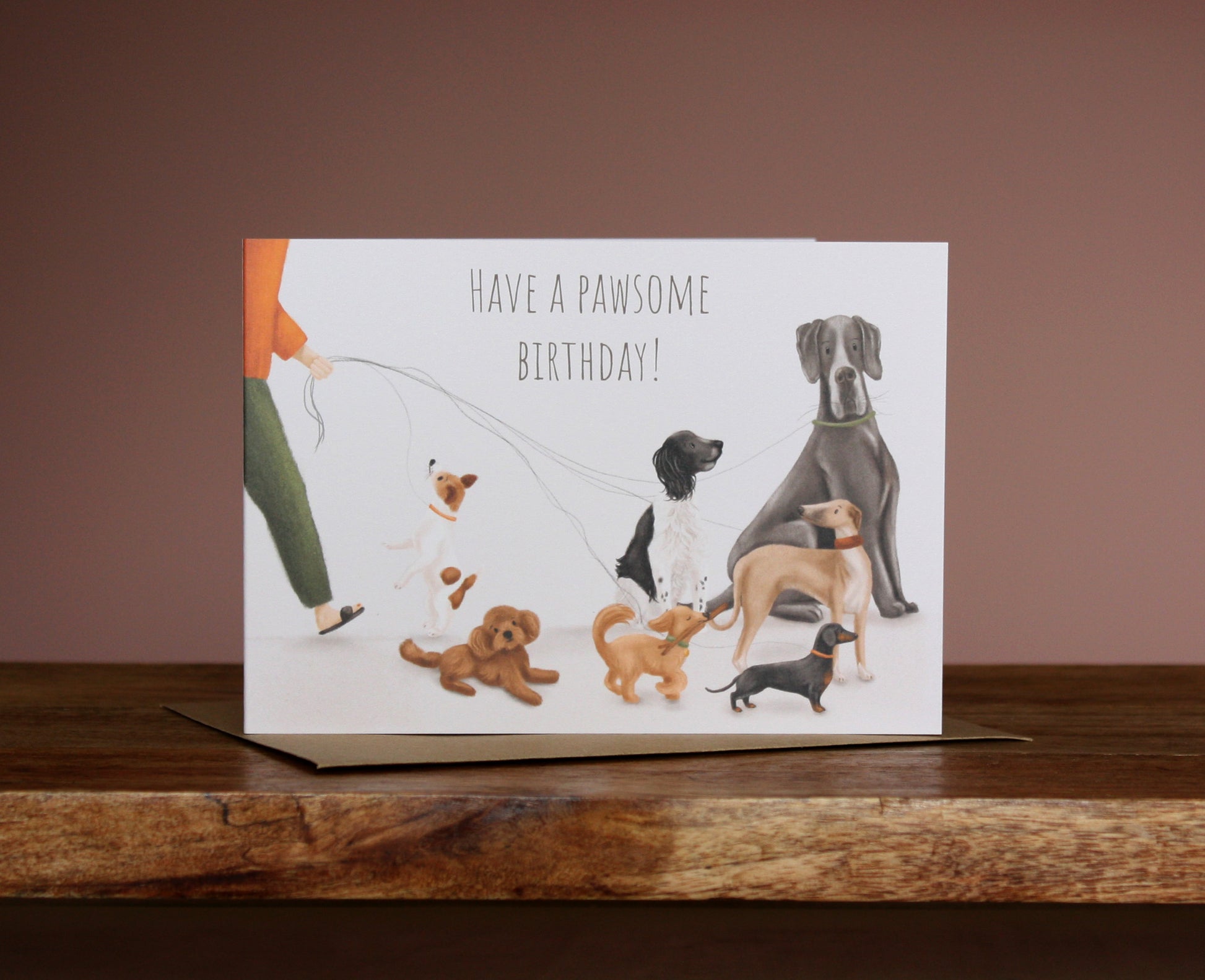 Wish someone a happy birthday with this new card in our range featuring a group of cute dogs out on their daily walk.